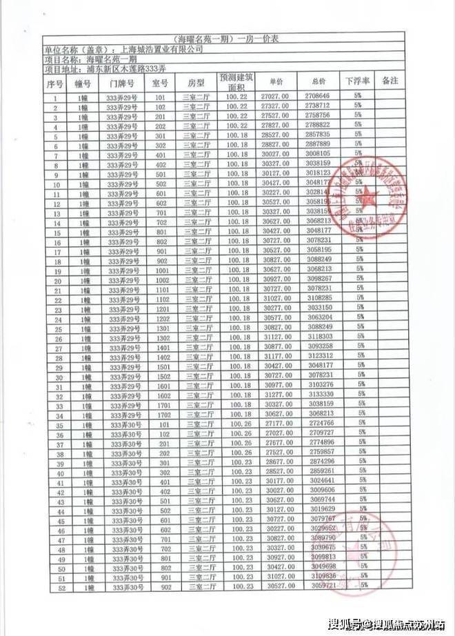 一房一价表