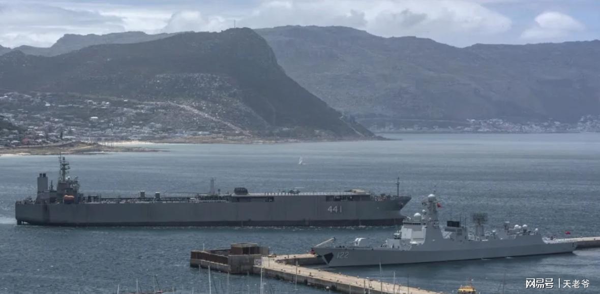 这艘伊朗海军现役吨位最大的水面舰艇,在南非首都开普敦市的西蒙斯敦港,首次实现了与中国海军现役052D大型防空驱逐舰122“唐山”舰的历史性同框。