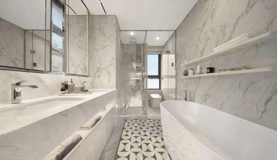 此外,室内还大量运用雅士白大理石、大花白岩板、皇家孔雀岩板、水纹夹丝玻璃、仿洞石岩板、卡拉卡塔白岩板、灰色皮革等定制材质,以华润置地独有的“五奢体系”,彰显着对高品质生活的极致追求