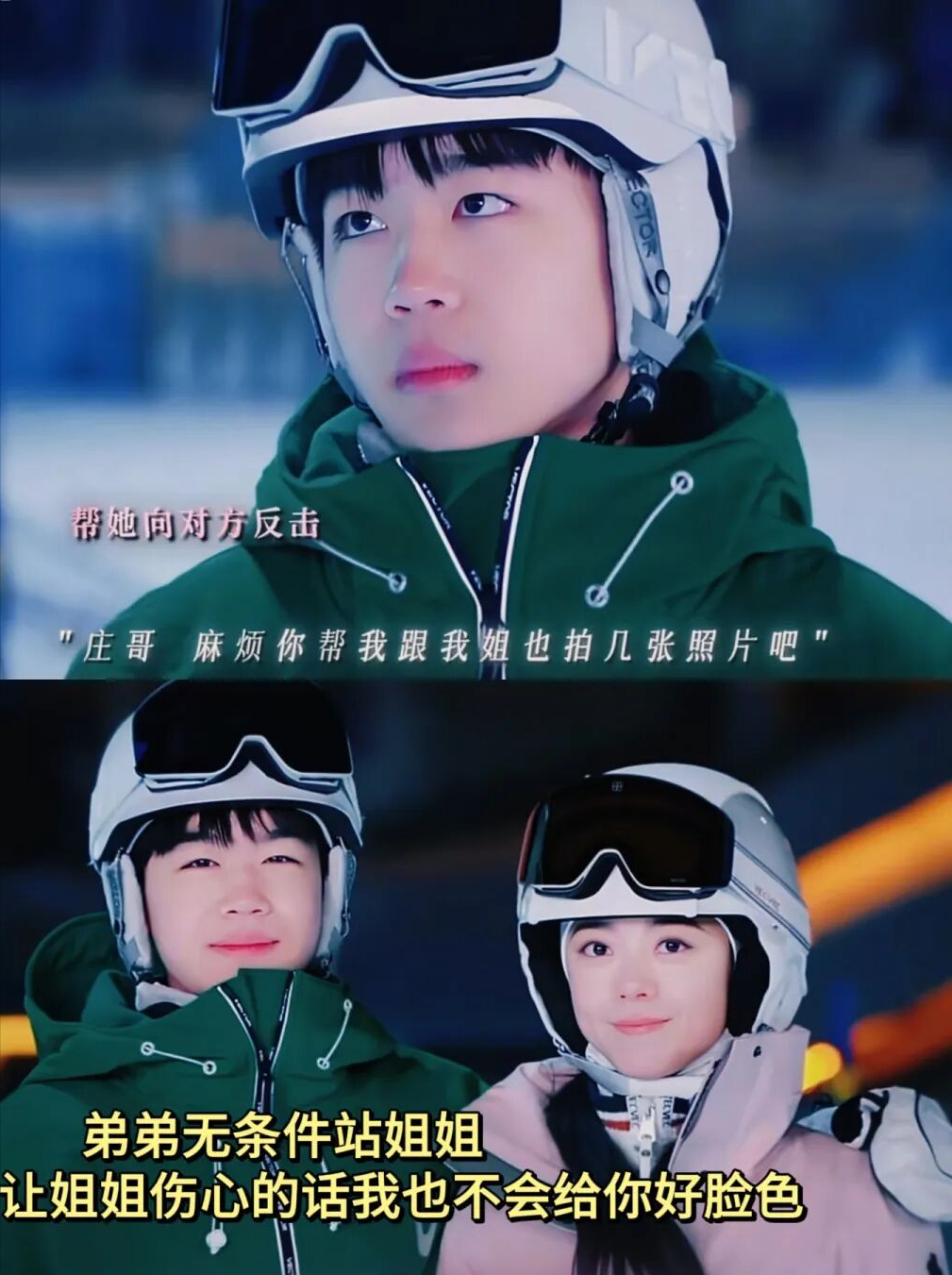 在长白山的雪地里,他和姐姐打打闹闹,被吐槽带的东西多还会反驳,模仿姐姐滑雪姿势搞怪。这种吵吵闹闹又充满爱的互动,像极了我们和自家弟弟的相处,是刻在家族里的“血脉压制”传统没错了。