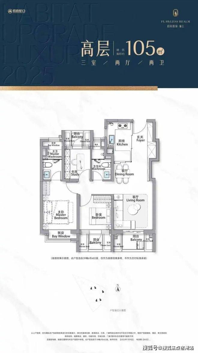 建面约105㎡3房,“三阳台”搭配花池的设计,✅✅招商臻境售楼处电话:400 - 8824 - 258✅✅直接性价比拉满,按照规定:三个阳台只算一半面积,花池不算面积,加上主卧+卫生间还带飘窗(主卧飘窗非承重结构),如此算下来,对购房者而言,日常可以实打实利用到的面积是远超市面上其他三房产品。