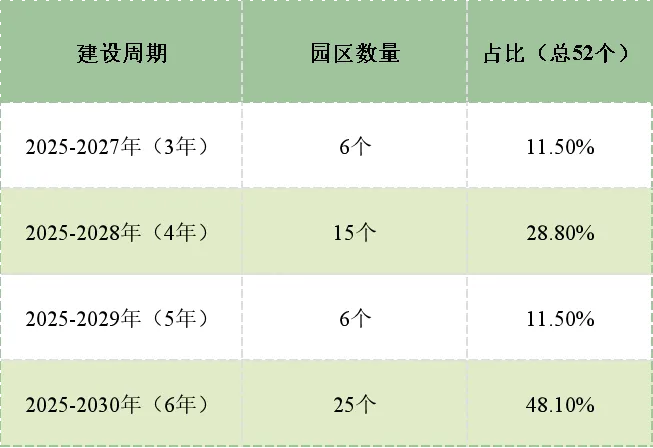 仅6个园区采用3年短周期(2025-2027年),多为产业结构相对优化、可再生能源资源较好的园区(如沈阳中德高端装备制造产业园、内蒙古包头稀土高新技术产业开发区),承担快速试点、经验复制的功能,为长周期园区提供示范。