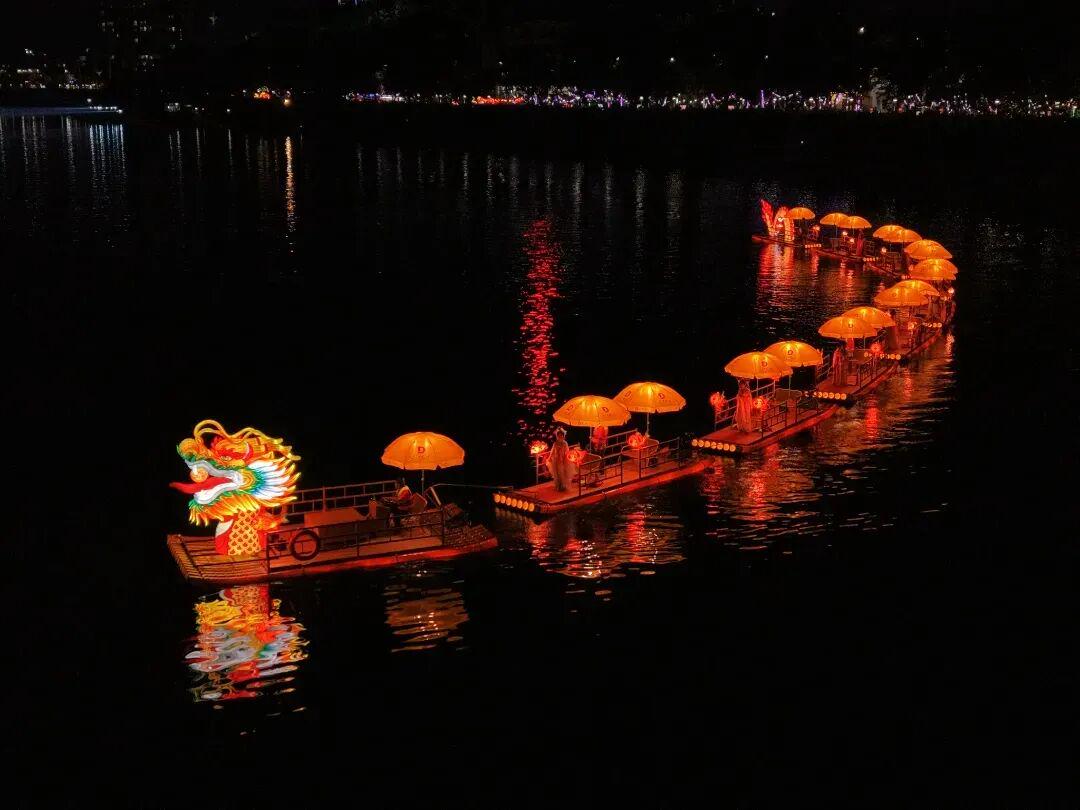 文博园的打卡热潮尚未褪去,新丰江畔的鱼灯夜游又添新彩。去年10月3日晚,“江湖渔火 太平夜市”河源第二届鱼灯夜游活动在市区新丰江畔盛大启幕。此次鱼灯夜游活动以水、陆、空为平台,以“鱼灯”为笔,以“客家文化”为魂,用别出心裁、精心设计、融合非遗元素的表演,赢得市民、游客阵阵喝彩,成为假期文旅消费新亮点。