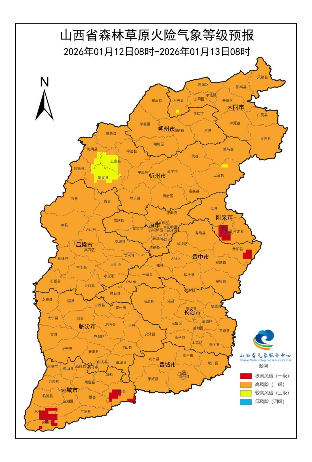 1月10日07时至11日07时,全省各地最低气温介于-26.2℃(新荣区)~-3.9℃(河津)之间。我省全域共117个县(市、区)最低气温在0℃以下,其中,云冈区、偏关、左云、朔城区、岢岚、广灵、浑源、平城区、云州区、右玉、新荣区共11个县(市、区)在-20℃以下,汾西、闻喜、临县、神池、阳曲、娄烦、沁源、阳高、左权、天镇、山阴、平鲁区、静乐、五寨等73个县(市、区)在-20~-10℃之间。