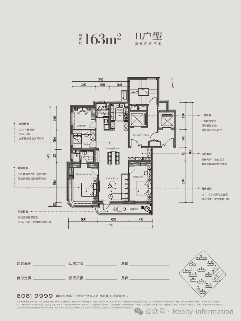 163㎡:客厅、南向侧卧7.3米超级观景阳台;主卧四分离设计,270°弧形转角飘窗+独立衣帽区+卫生间;全明户型,餐客厨南北通透,动静独立分区...