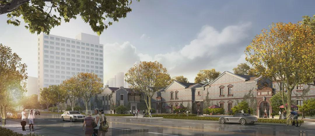 立面设计上,项目还原了上海海派风格,同时使用老砖、老瓦、老石箍等保留构件,更加贴近场地历史,延续传统历史建筑风貌。