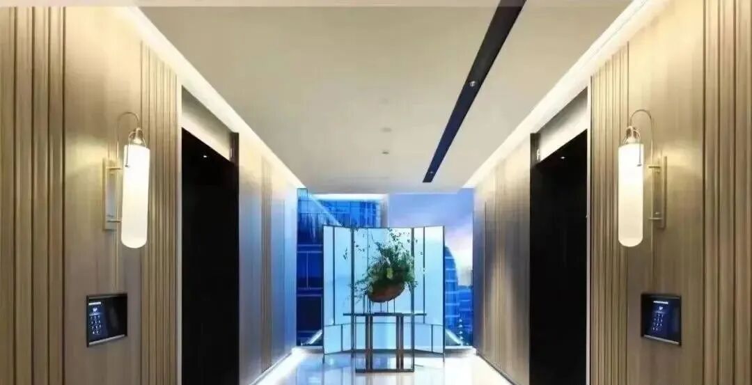 偏核心筒设计约70%使用率电梯厅自然采光 舒适候梯