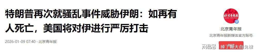 北京青年报:特朗普再次就骚乱事件威胁伊朗:如再有人死亡,美国将对伊进行严厉打击
