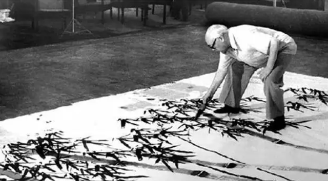 十年动乱结束,他恢复名誉,已至耄耋之年,却依旧心怀壮志,决心用鸿篇巨制振兴中国花鸟画。三四张丈二匹宣纸拼接的画面,八十余岁的他挥毫泼墨,笔力依旧沉稳,墨色间藏着一生的风雨与坚守。