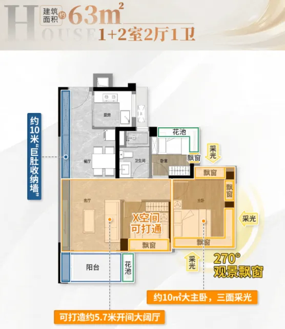 【产品力解析】63㎡做三房,实用率超100%,精装交付总价160万起