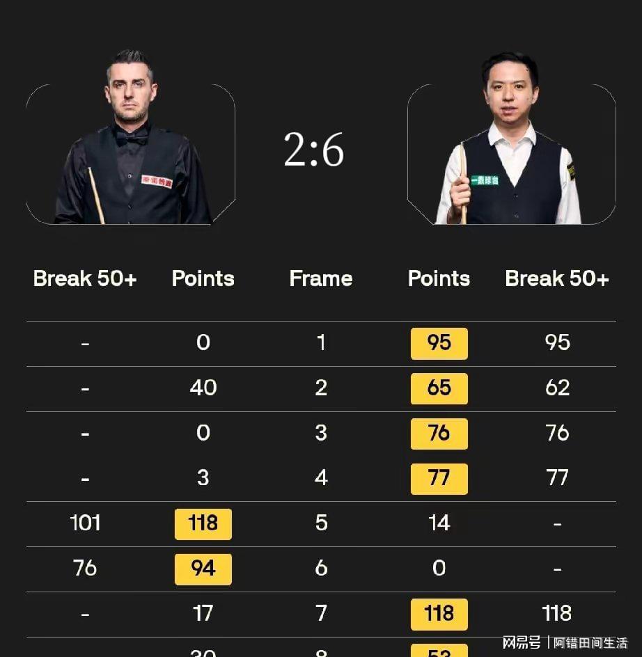 全场比赛,肖国栋打出一杆过百,杆四杆50+,而塞尔比虽然也有一杆过百一杆50+入账,但失误频频,肖国栋收礼收到手软,最终,肖国栋以6:2战胜对手,昂首晋级。