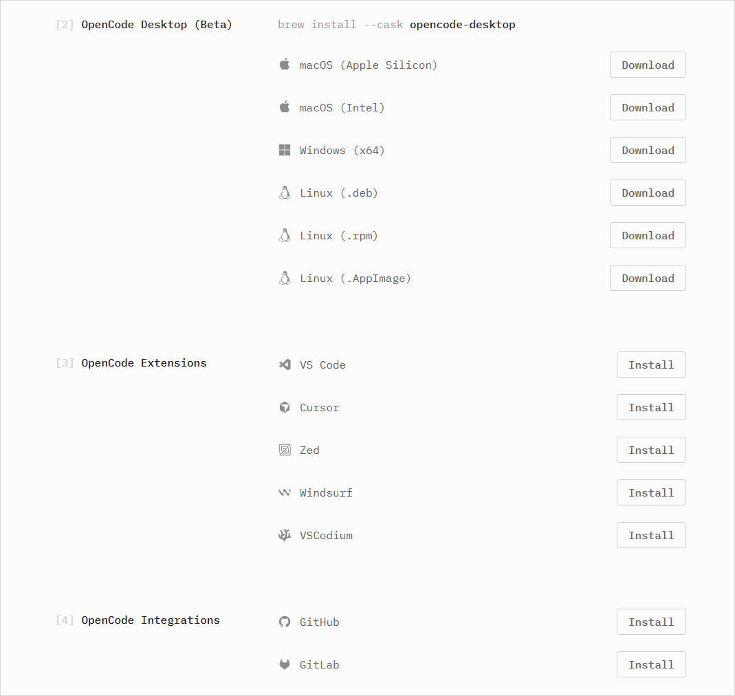 OpenCode我觉得最棒的一点,就是它有专门的客户端,你不需要用看像A ntigravity那样 复杂的IDE界面,也不需要去知道什么叫CLI什么叫各种命令。