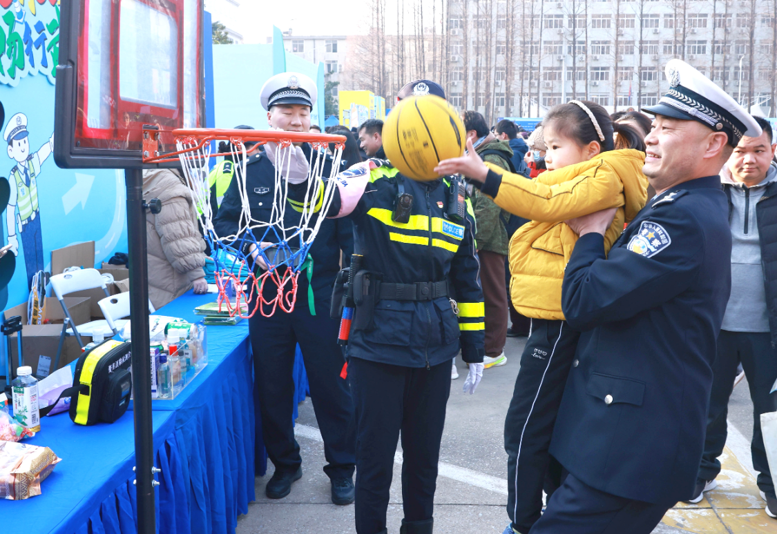 家住汉西路的李女士,一早就带着全家人来到活动现场。看了汉警快骑的车技表演,又跟交警姐姐合影,孩子们高兴得又蹦又跳,但是在投篮游戏面前却遇到“难题”。由于个子矮,力气小,还不满6岁的孩子几次都没投进,急的泪水在眼眶里打转。交警叔叔跑过来跟她耳语一番,小姑娘立刻破涕为笑,大喊一声“起飞啰”,立刻就被叔叔抱起来,把球送进篮筐,赢得了心仪的奖品,现场顿时响起了一片掌声和笑声。