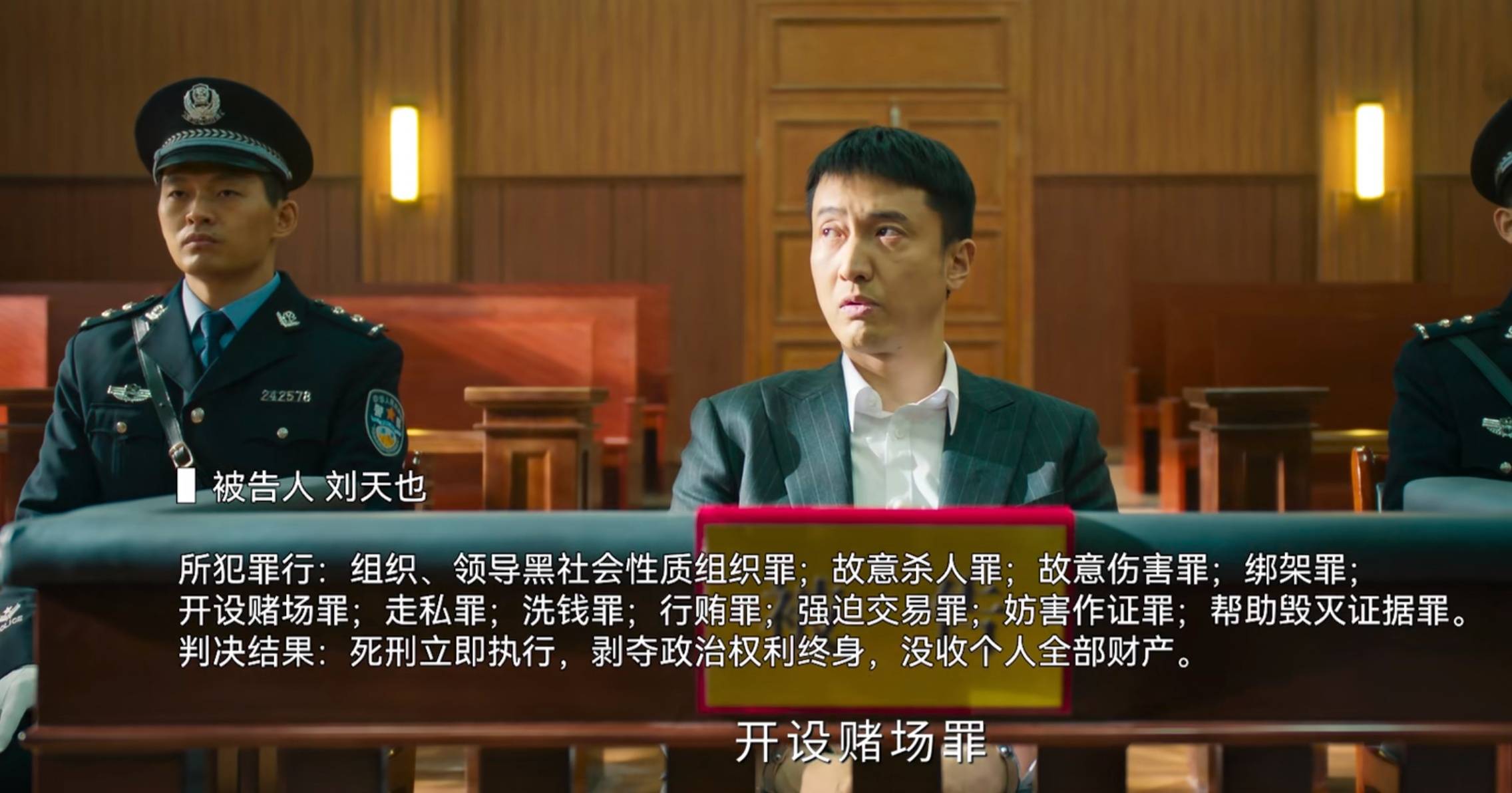 刘天也准备杀了弘沐寿,目的自然是为了复仇,但是警方赶到,最终刘天也被抓,弘沐寿被抓,至此盘踞在汉洲的黑恶势力彻底被打掉。最后的结局里面所有犯过罪的人都收到了审判,只是出人意料之外的是除了死掉的陈水发和赵鹏、丁小帅、刘天飞之外,所有人的结局都令人没想到。