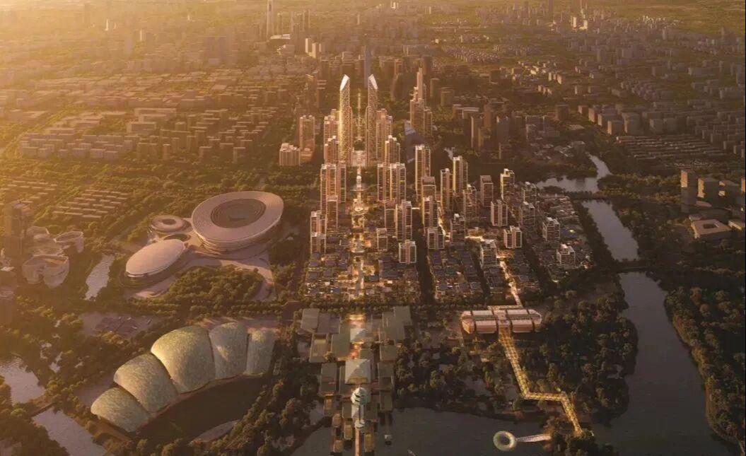 位于中轴线西侧,由扎哈哈迪德建筑事务所中标设计,将打造成为满足 “国际赛事 + 全民运动 + 商业休闲” 功能需求的一站式 “国际体育中心”。这里包含 60000 座满足 FIFA 标准的专业足球场、19000 座满足国际赛事标准的专业体育馆、800 座游泳跳水馆,目前已开工建设。建成后,将成为区域内的标志性体育设施,为居民提供观看国际赛事、参与体育运动和休闲娱乐的场所。