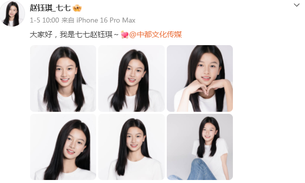 她前两天在各位男明星的夹缝中也上过几个热搜,是因为1月4日,七七官宣自己签约了中都文化传媒↓