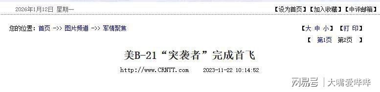 《美B-21“突袭者”完成首飞》——来源:中国国防报