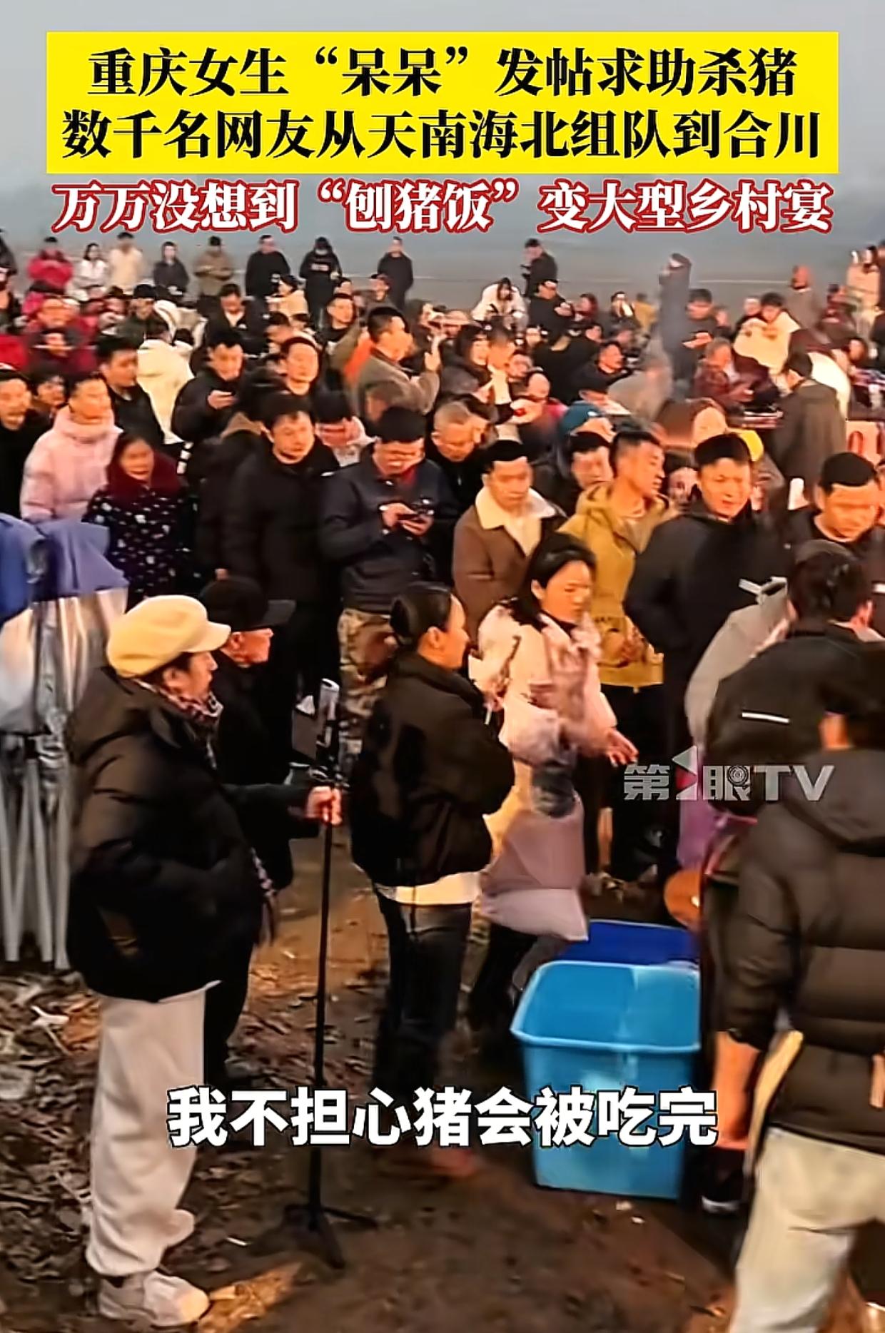 而这件事最初,呆呆只是心疼年迈的父母搞不定杀猪这件事,想邀请一些就近的网友来帮忙,顺便吃个刨猪汤,没想到视频过了,3000多个人都要来,这就让呆呆骑虎难下了,如果拒绝,那么她就得被骂,答应下来,2头猪都不够吃,还好文旅局介入了,送了几头猪来,让呆呆一家能有操办的猪肉。