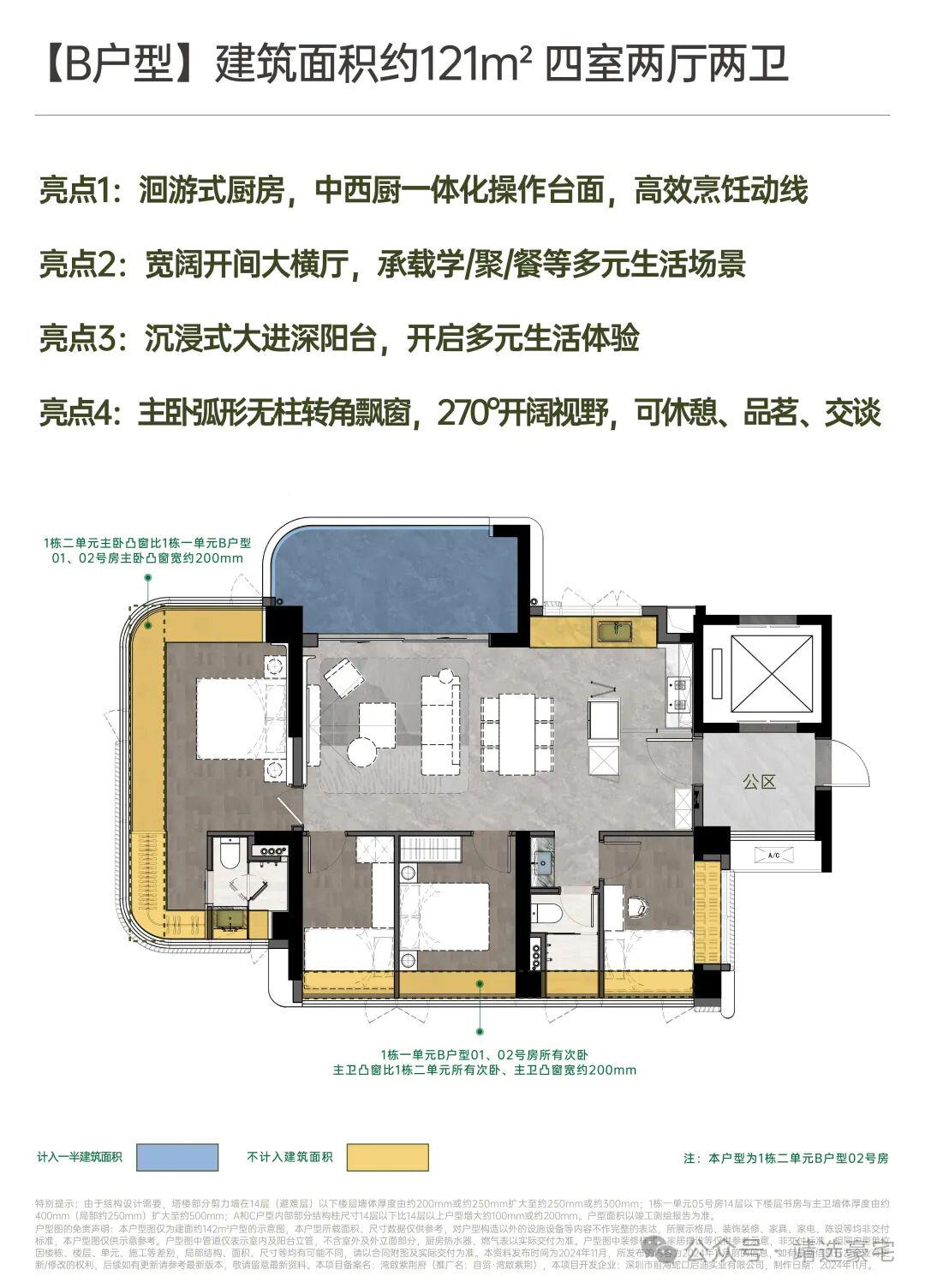 270°弧形无柱大尺度飘窗、大宽厅、大阳台,带来更多使用空间。