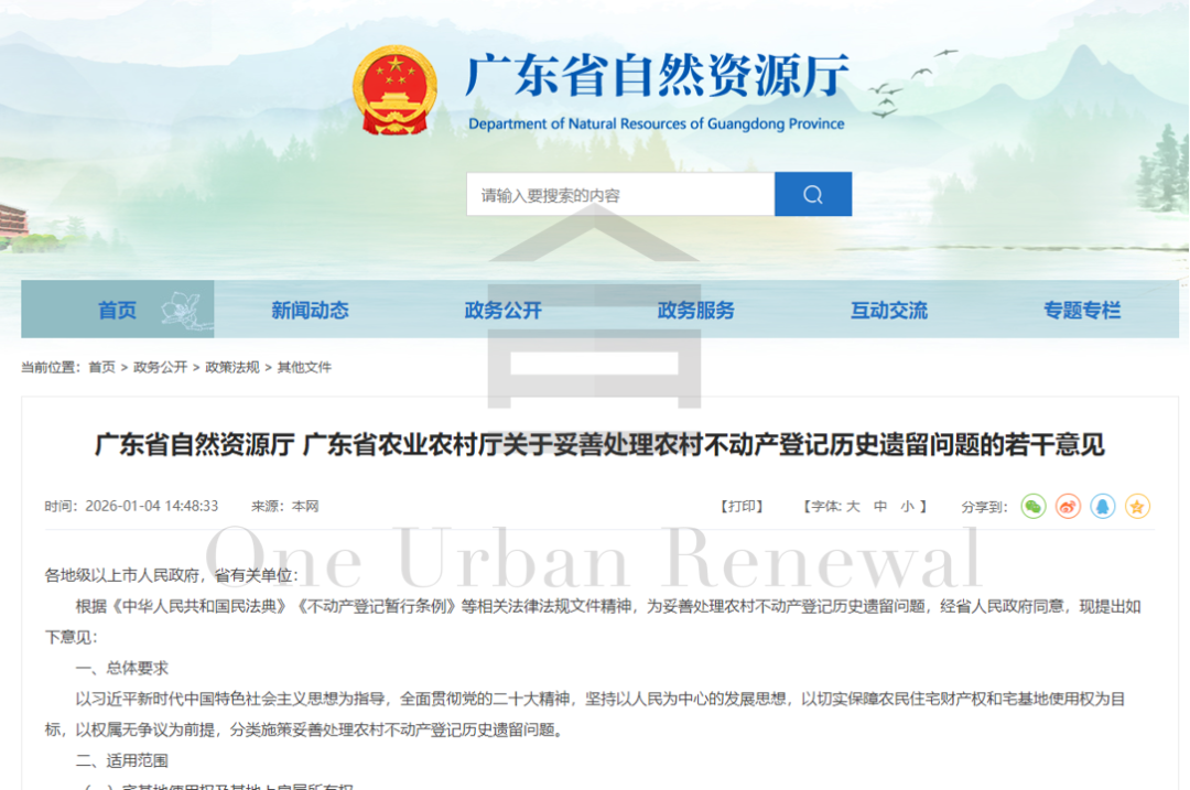 通知内容:1月4日,广东省自然资源厅 广东省农业农村厅关于妥善处理农村不动产登记历史遗留问题的若干意见。