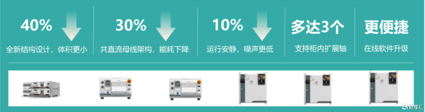 2、硬件智能深度融合:全新硬件设计推动电控系统从通用化迈向智能化,新一代高集成控制柜引入可控整流技术,大幅减小体积及能耗,控制器平台兼备AI扩展能力,支持通过E-Care接入云平台、ERI连接外部智能终端,实现“节能、集成、智能”一体化。