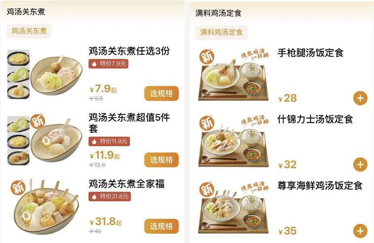 但在新店型中,它被升级为“鸡汤关东煮”,主打“慢熬一口鲜”。
