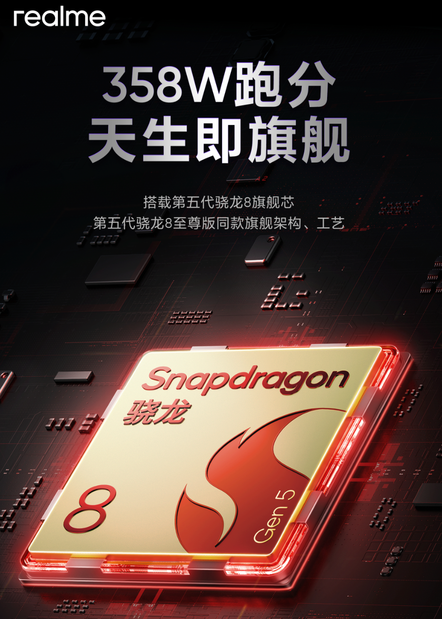 真我 Neo8 官宣搭载骁龙 8 Gen 5 处理器,官方表示跑分可达 358W。