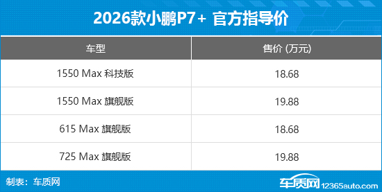 1月8日,2026款小鹏P7+正式上市,新车共推出4款车型,官方指导价为18.68-19.88万元,有增程、纯电两种动力形式。同时,官方还推出购车礼、置换礼、复购礼等多项限时购车权益。