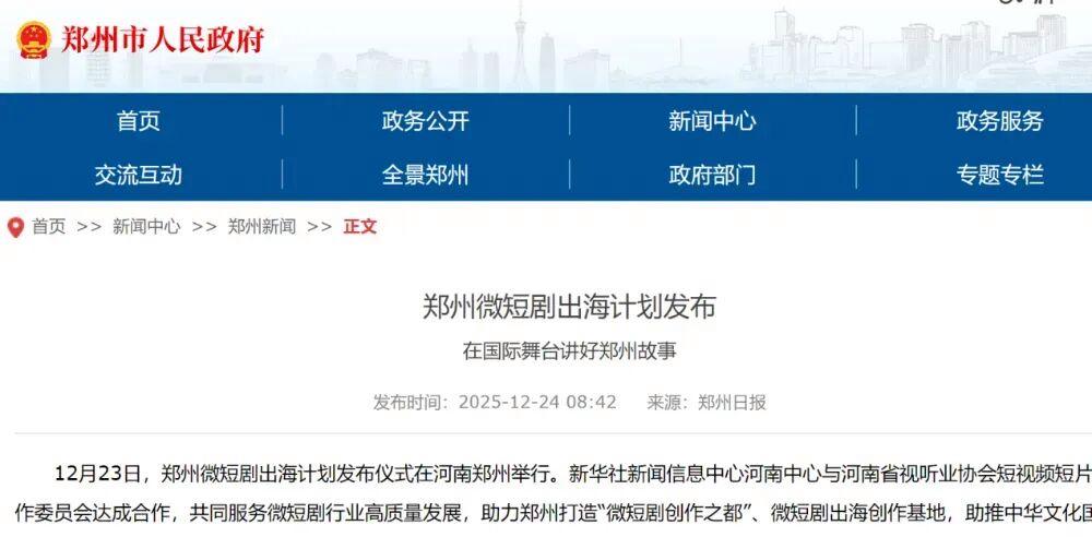 短剧出海大战升级:郑州用亿元基金和全产业链加入争夺。