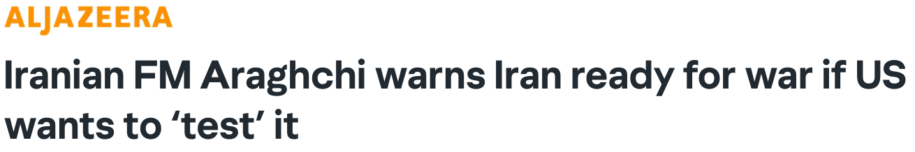 针对美国总统唐纳德·特朗普上周日(1月11日)就伊朗国内抗议局势发出的军事威胁,伊朗外交部长阿巴斯·阿拉格齐1月12日(周一)通过半岛电视台阿拉伯语频道发出明确警告:伊朗已为包括战争在内的一切可能性做好充分准备。