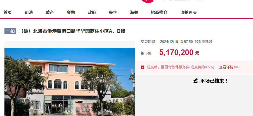 可惜!有人缴纳了180万元保证金报名了,南宁市这栋巨无霸楼房还是流拍了。