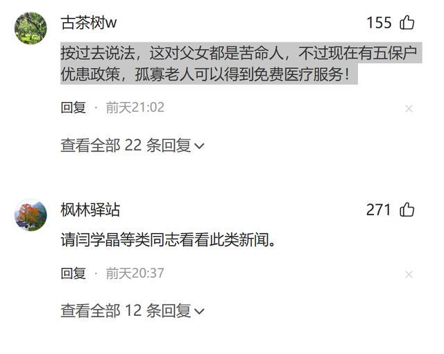 按过去说法,这对父女都是苦命人,不过现在有五保户优患政策,孤寡老人可以得到免费医疗服务!