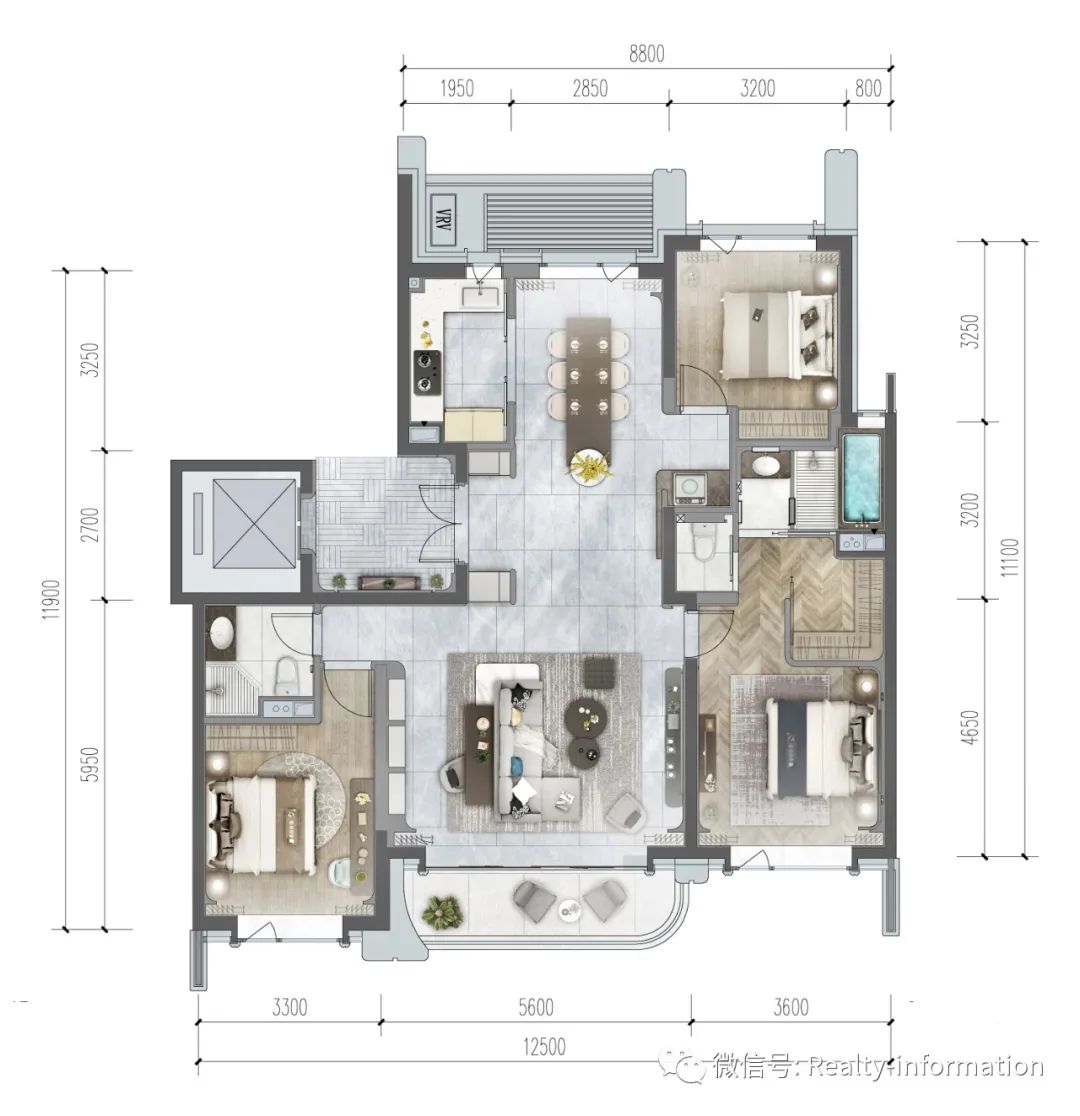 ·约12.5米南向三面宽,LDKB一体化创新设计,满足家庭全周期社交;