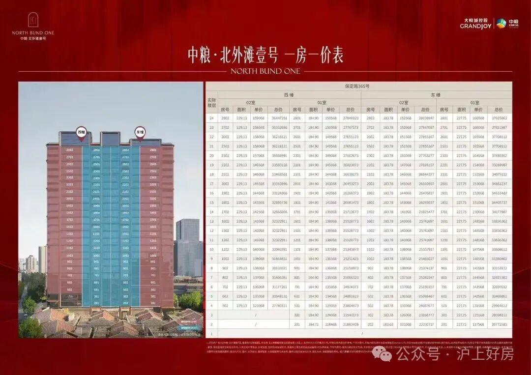 中粮北外滩壹号一房一价表: