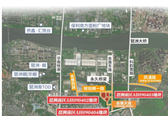 - 北侧35万㎡琶洲南商业综合体已部分交付,周边有六元素体验天地、南丰汇等商业配套。