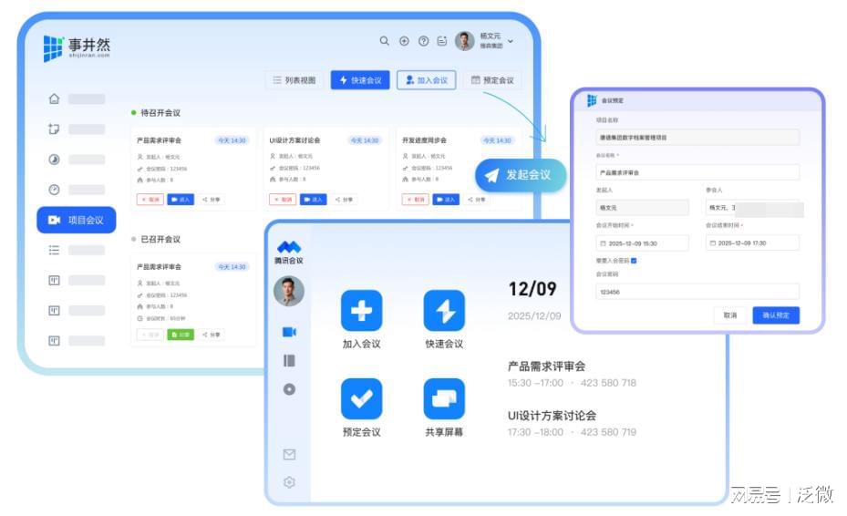 针对项目管理中的会议场景痛点,泛微·事井然-数智化项目管理平台携手腾讯会议发布了项目智能会议助手,打通 “会议发起 - 过程记录 - 成果同步 - 任务落地 - 进度联动” 全流程,让项目会议高效闭环。