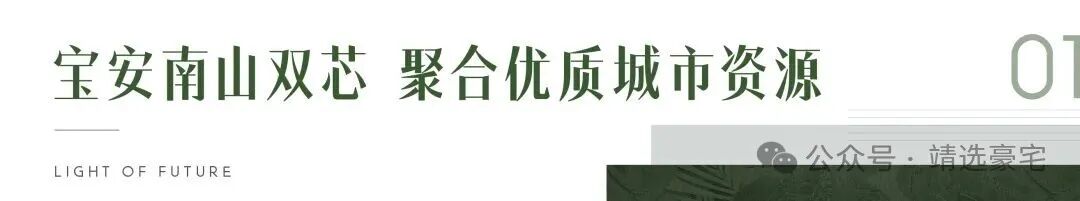 优质城市资源:东靠南山三大重点发展片区(即留仙洞战略性新兴产业总部基地、西丽湖国际科教城、西丽高铁新城),南接前海深港现代服务业合作区、西临宝安中心,北靠尖岗山景观资源,区域价值将随着发展不断提升。