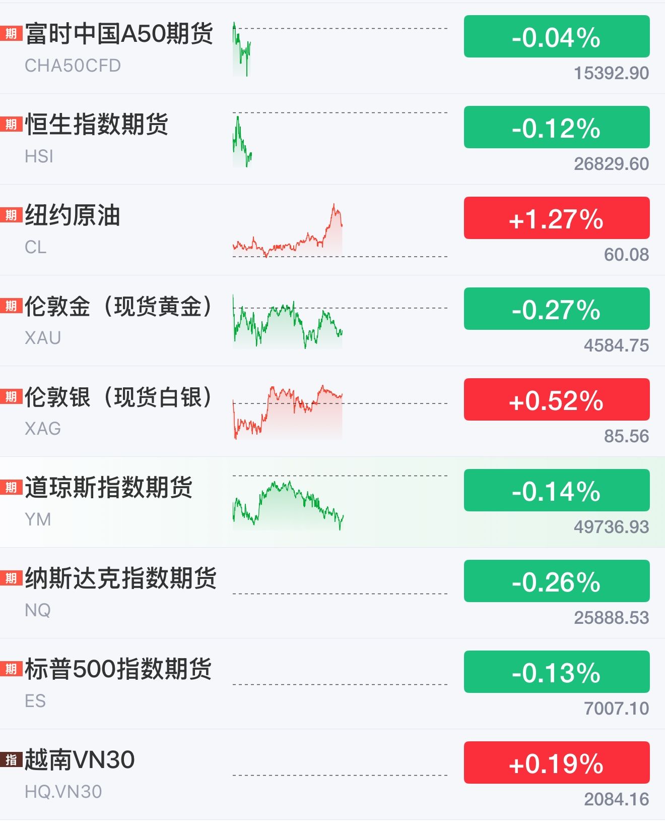 六、越南股市/港基/美基期货盘前三大股指/国际原油涨跌情况