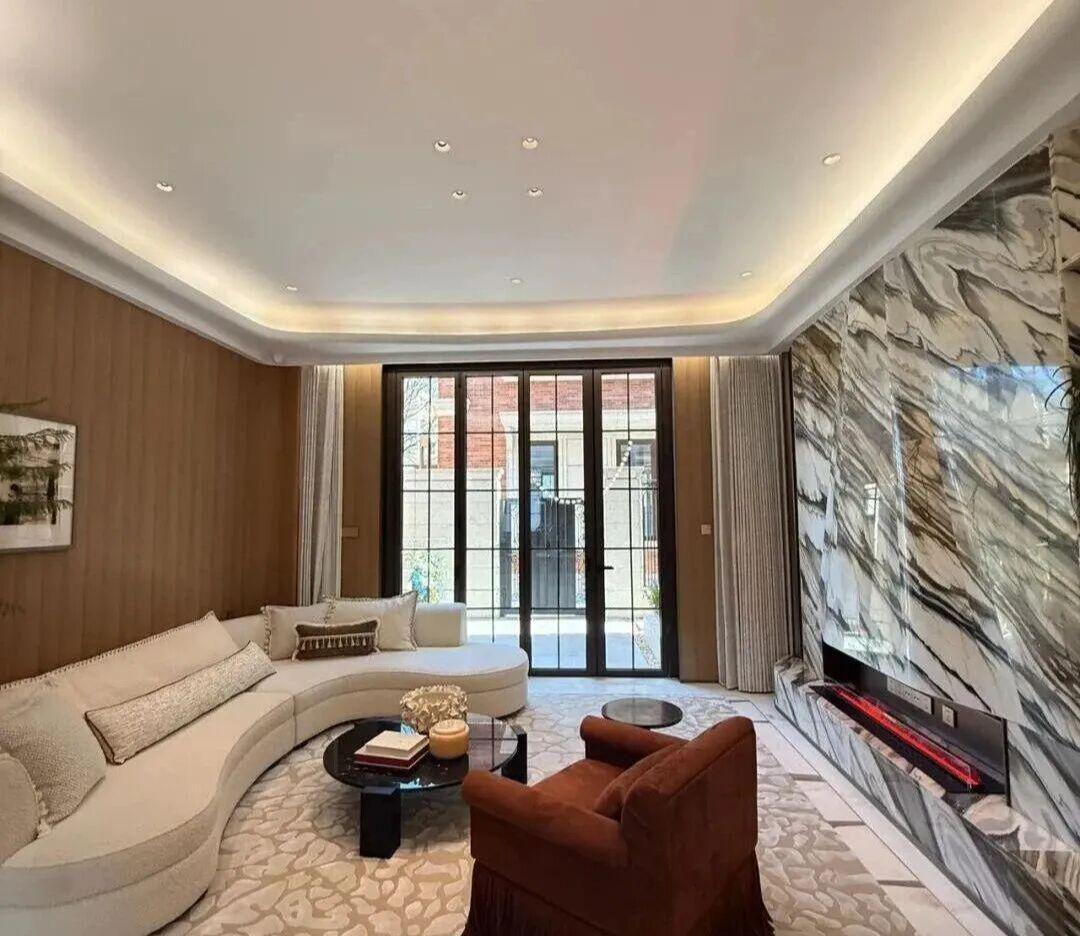 社区内设有上海风情的“三院”、海派精奢的三花园,让优雅的生活氛围随之铺展开来。下沉庭院整体长约18米,进深约9.5米,庭院的上下景观通过水帘相连通,中间结合有着层层叠水的水景,搭配水晶砖的景墙,将品质感拉满。
