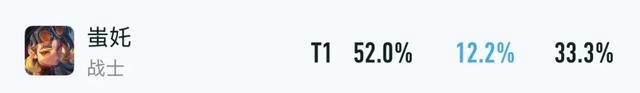 也正因如此,占据“天时地利人和”的蚩奼,巅峰赛胜率才能高达52%,BP率更是有45.5%,强度断档领先。
