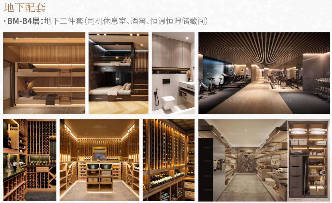 - 地下空间配置私家车驾驶员和私人助理休息室、家庭酒窖、家庭储藏室。