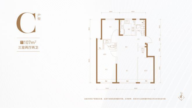 107平三居,首开30套,南向三面宽达9.6米,南北通透,餐客厨一体,厨房U型设计,明厨明卫,南向双卧配置飘窗,主卧套间设计。