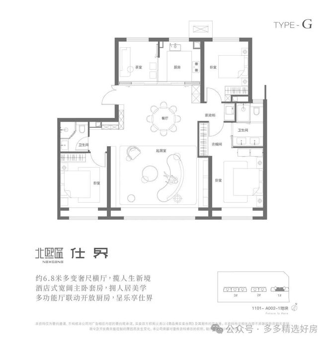【京投发展北熙区·仕界G 户型 建面约170㎡ 四室两厅两卫】