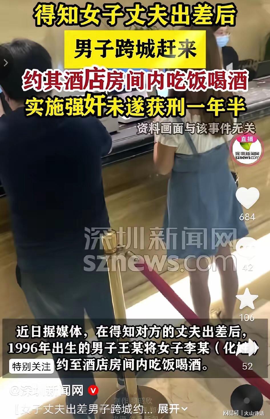 湖北咸宁,男子得知女子的丈夫出差后,赶到女子所在的城市,将女子约到酒店,不顾女子反对,欲强行跟女子发生关系,女子反抗并报警,男子并未得逞,可结果还是悲剧了。