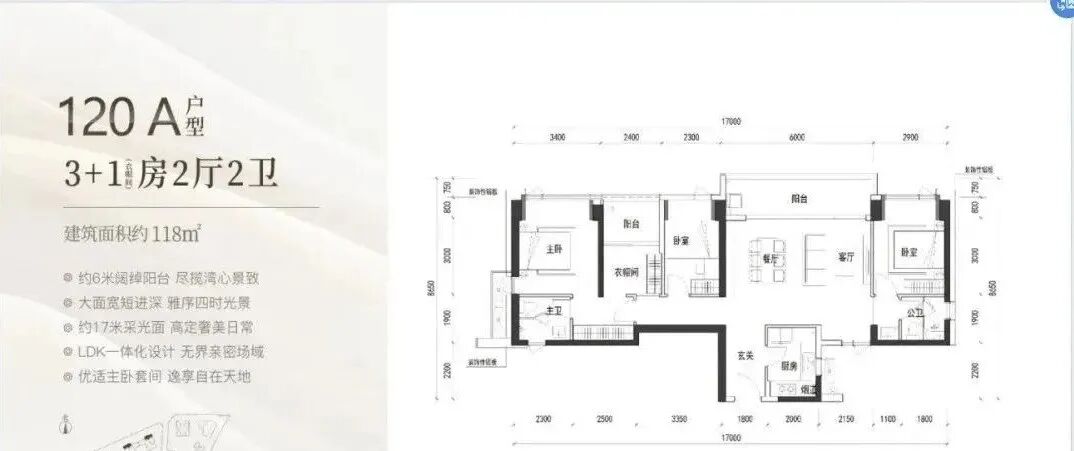 120㎡:客厅与卧室连通9.6㎡超大阳台,主卧带5.2㎡衣帽间,还有观景小阳台,主要为东南和西南朝向