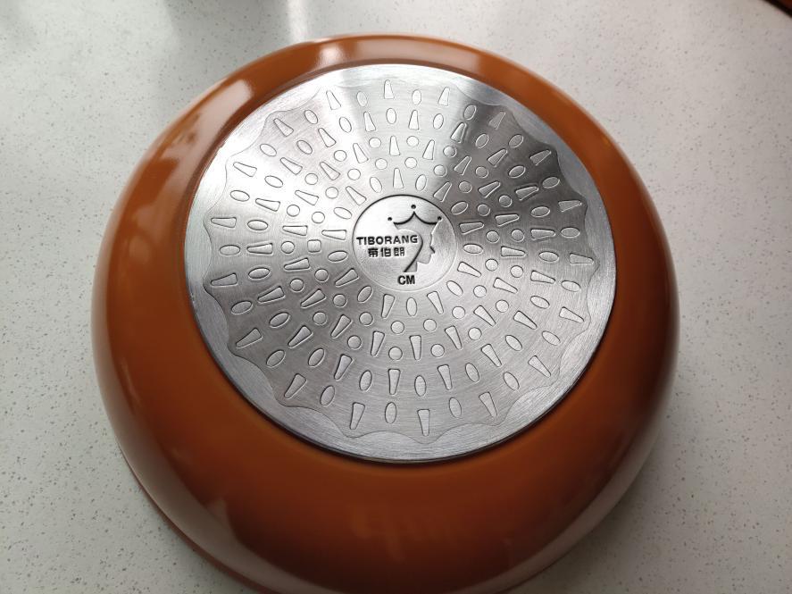 我家以往一直用的铁锅,非常重,这是我讨厌用我家锅的一个主要原因。而帝伯朗零氟氧吧锅整个包含手柄的重量也才1kg左右,太轻松了,想想都觉得自己能变成颠勺大神了。