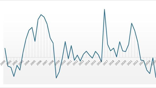 当代艺术景气指数构建的目的是用来衡量全球当代艺术市场的热度,覆盖全球所有当代艺术家过去25年在苏富比、佳士得和菲利普斯三大拍卖行33000多次交易。当代艺术市场景气分别在2006春季、2016秋季、和2021春季达到历史高点,其中2006年左右的好景气持续时间最长,其中许多拍卖季景气指数超过0.3,意味着市场竞拍非常激烈,作品平均按高于估价30%成交。当代艺术景气分别在2001秋季、2008秋季、和2025春季达到历史低点。