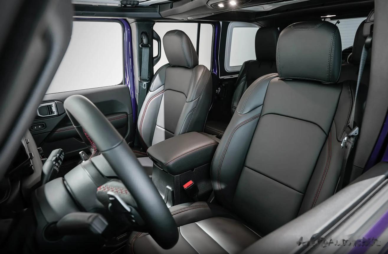 2026款牧马人392座椅采用Nappa真皮材质,并且支持加热和通风功能,中控屏幕的尺寸为12.3英寸,阿尔派音响系统为标配,车门的铰链也进行了加强处理,2026款牧马人392还可以选装Sky One-Touch电动敞篷顶,让车辆的可玩性更好,内饰一些细节同样增加了392专属LOGO。