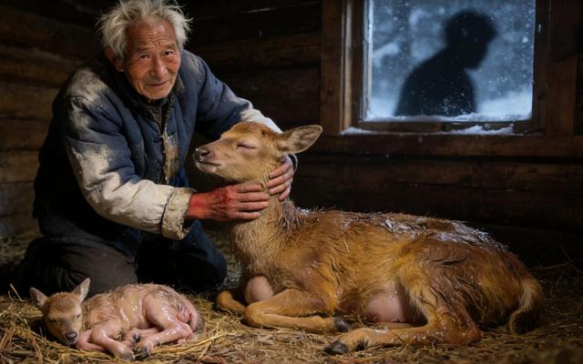 屋子里,炉火正旺,昏黄的灯光照在母鹿沾满血污和冰雪的皮毛上,也照亮了它腹部那令人心惊的起伏。