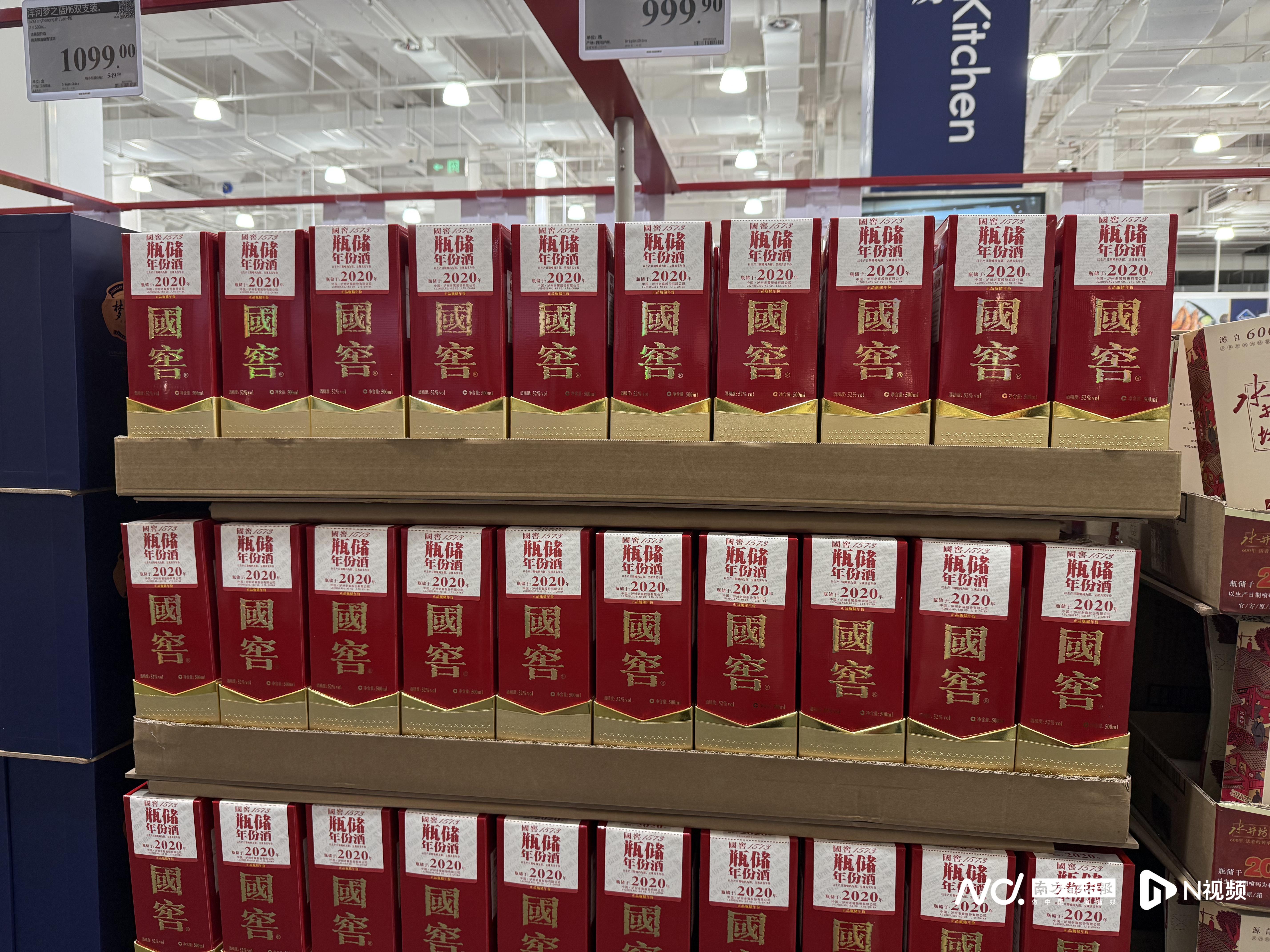 在成都山姆门店,价签显示:2016年产的五粮液(500ml/52度)售价1099元/瓶,2020年产的第八代五粮液(500ml/52度)939.9元/瓶,整箱2020年产的第八代五粮液售价5599元/箱;2019年“瓶储年份酒”国窖1573(500ml/52度)售价1019元/瓶,2020年“瓶储年份酒”国窖1573(500ml/52度)售价999元/瓶。